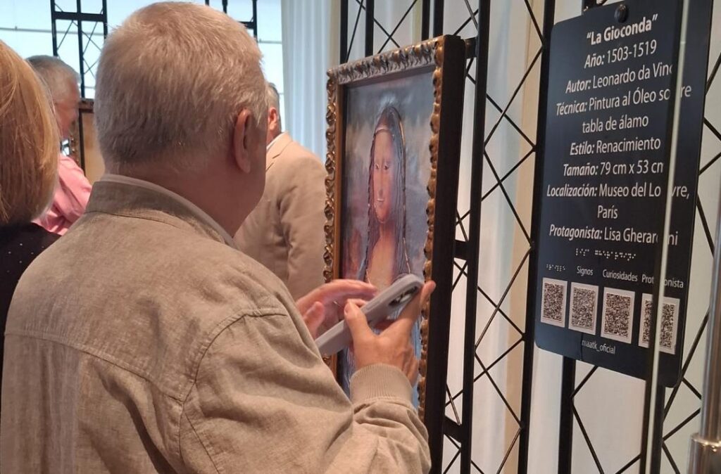 Para garantizar la accesibilidad, la exposición incorpora códigos QR que enlazan a vídeos explicativos en lengua de signos, facilitando la comprensión de las obras a personas con discapacidad auditiva. Incluso el sentido del gusto forma parte de la experiencia, redondeando un recorrido sensorial completo.